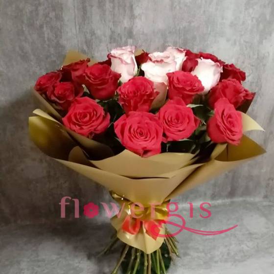 Роза Бело-розовая 5 шт